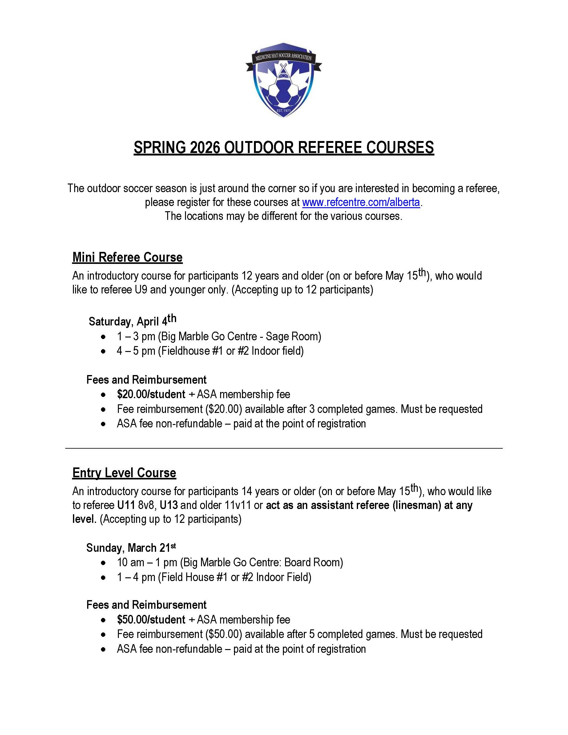 Spring 2026 Referee Courses are Now Open! Click Here to REGISTER